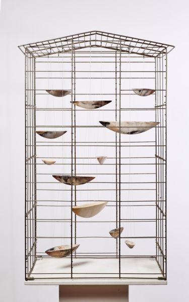 In meiner plastischen Formsprache arbeite ich mit Symbolen, die unabhängig von Kulturkreis und Prägung verstanden werden. Bootsformen, Behausungen und figurative Arbeiten zeigen eher einen Zustand als einen Gegenstand. Die strenge Sparsamkeit und Zurückhaltung der Form, lässt inhaltlichen und spirituellen Aspekten Raum. Boote schweben, ohne Start- und Zielhafen, an kaum sichtbaren Nylonfäden in Acrylglaskuben. Durchbrochene Bootskörper lassen an deren Tragfähigkeit zweifeln, assoziieren gesunkene Hoffnungen und gebrochene Biographien. Metaphorisch geht es immer wieder um den Zustand der Veränderung und der Bewegung durch Zeit und Raum.