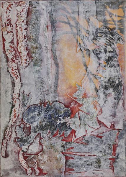 Durch Schichtung unterschiedlicher Materialien entsteht ein surreal - abstraktes Arrangement mit räumlicher Tiefe und Plastizität, welches oft, ohne Landschaft zu sein, als solche interpretierbar ist. Magie und Poesie von Landschaft werden so auf einem Stück Leinwand konzentriert.