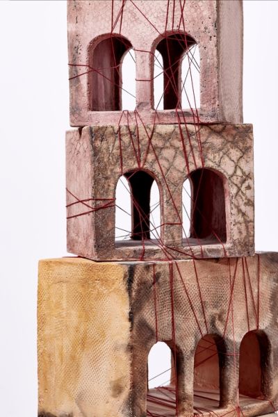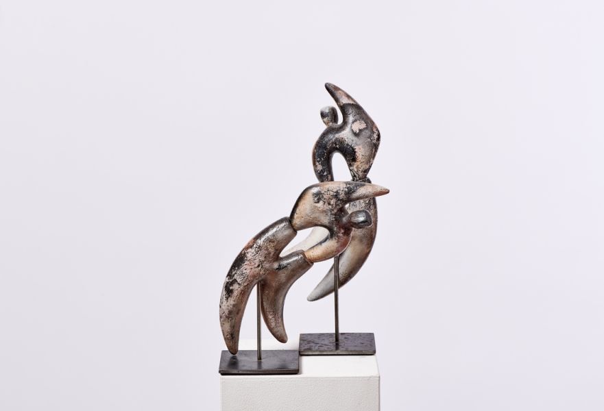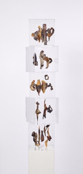 In glatten, komprimierten, gestauchten, eingerollten oder strukturierten Formen finden sich Bezüge zu den Rhythmen der Natur. Keramische Objekte erinnern an Pflanzenformen, an Wachstums- und Schrumpfungsprozesse, die Gedanken an Lebenszyklen evozieren. Durch eine schwerelose Hängung entsteht eine Synthese von Material und dargestelltem Inhalt.